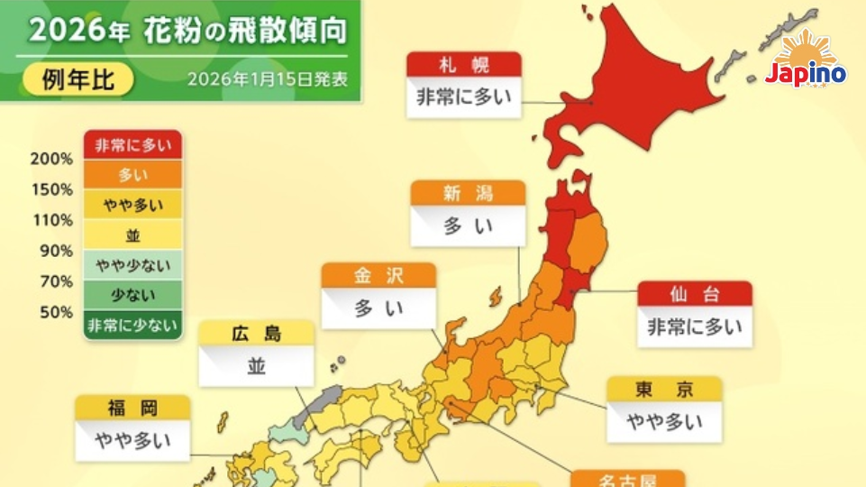 Nakatakdang magsimula ang pagkalat ng cedar pollen sa unang bahagi ng Pebrero sa mga rehiyon ng Kyushu at Tokai. Sa pagitan ng Kyushu at Kanto, inaasahan ang simula nito sa kalagitnaan ng buwan, habang mula Hokuriku hanggang Tohoku, inaasahang magsisimula ang paglabas ng pollen mula huling bahagi ng Pebrero hanggang kalagitnaan ng Marso.