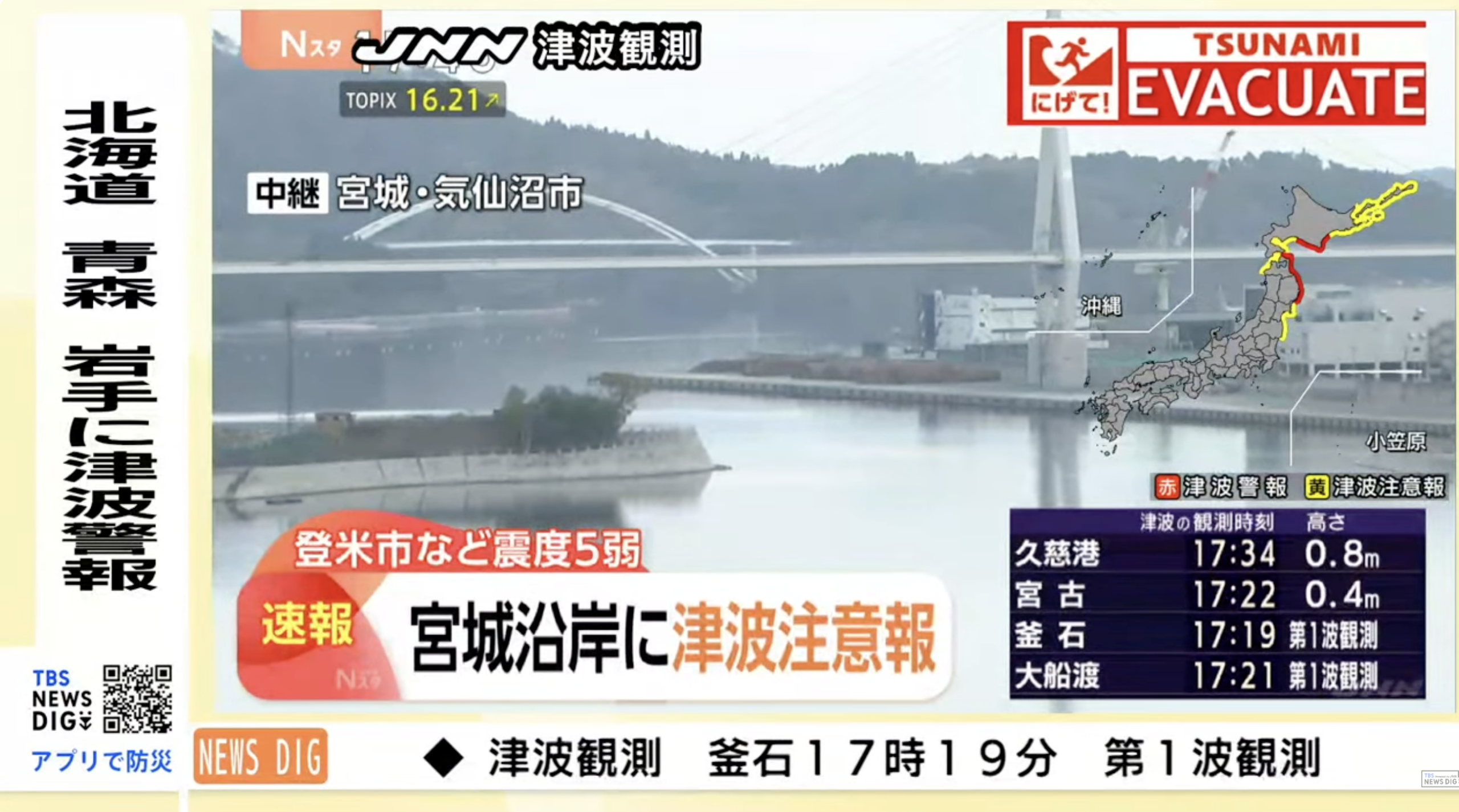 Ipinapakita rin ng mga unang ulat na umabot sa antas 5 ang pinakamataas na lakas ng pagyanig sa ilang bahagi ng hilagang Japan.